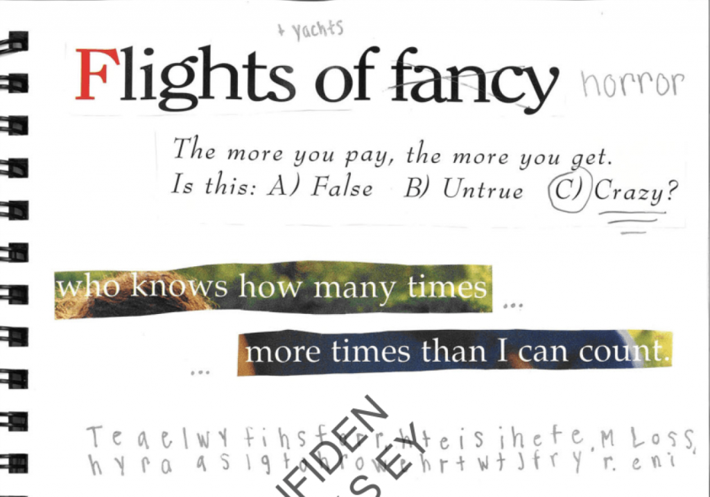 The worst page is towards the end (page 27): “Flights and yachts of horror”. “They are always flights of horror whether its with Jeffrey…”[or a number of other men’s names]. “I am so confused by everything and people who you expect to be good like even old senators like George Mitchell who you think will be like a grandpa are bad.”
